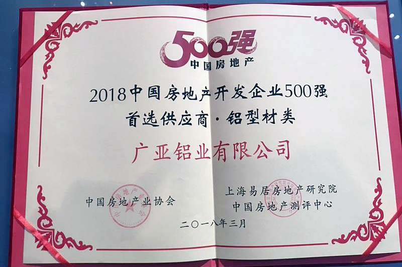 廣亞鋁業(yè)以全國(guó)鋁企前3甲,獲選房地產(chǎn)開發(fā)企業(yè)500強(qiáng)首選供應(yīng)商。