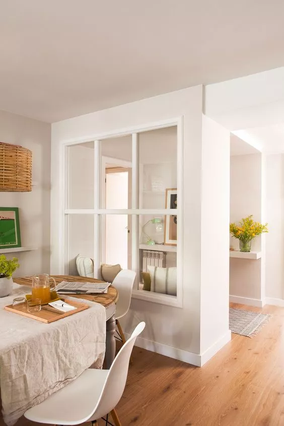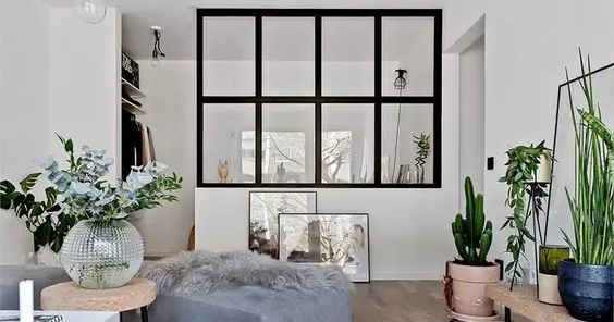 當四面都是大實墻,黑黢黢的“暗間”密不透風(fēng),這種情況你可以考慮安裝一個室內(nèi)窗,向房子的內(nèi)部借光。