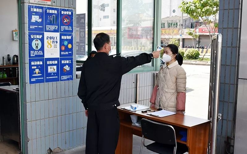 復(fù)工當(dāng)日,員工進場除配帶工作證外,還需配帶實名臨時出入證。每位員工入廠都要帶口罩、測體溫,經(jīng)檢查健康無異后方可入廠。公司所有洗手間都配備了消毒清潔液,并要求員工嚴(yán)格按照“八步洗手法”勤洗手。