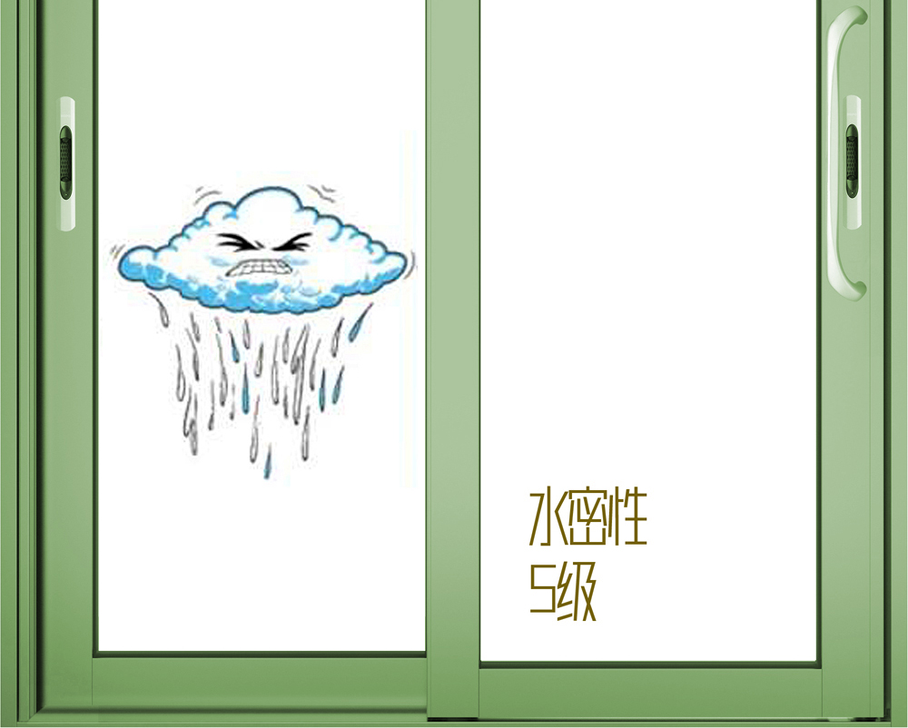 就水密性而言,本系統(tǒng)采用了多道密封結(jié)構(gòu)形式。在框上設(shè)計整圈密封膠條,兩扇勾企處包括兩扇勾企內(nèi)側(cè)均設(shè)計了多道密封膠條阻隔雨水,型材腔體排水經(jīng)過合理設(shè)計,將水排向室外側(cè),從而確保了很好的“避水”效果。
