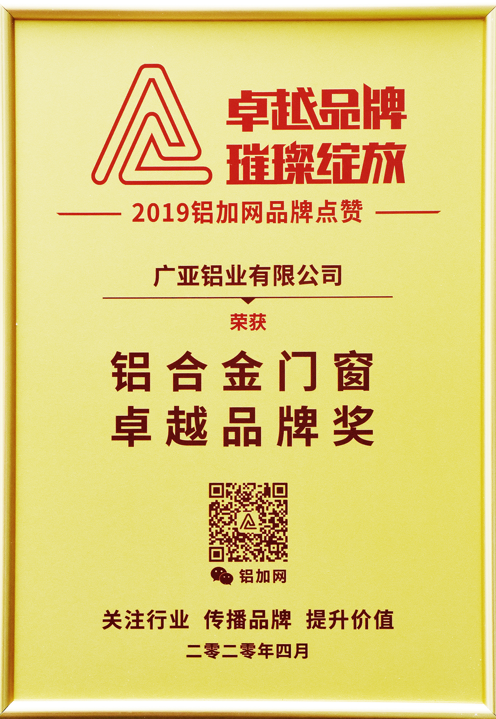 近日,從鋁加網(wǎng)獲悉,經(jīng)過全國用戶歷時半年的網(wǎng)絡(luò)票選,2019年鋁加網(wǎng)品牌點贊排行榜終于榮耀出爐。廣亞鋁業(yè)歷經(jīng)24年厚積薄發(fā),不負眾望,從800多家品牌中脫穎而出,一舉斬獲建筑鋁材、工業(yè)鋁材、鋁合金門窗3項卓越品牌大獎。