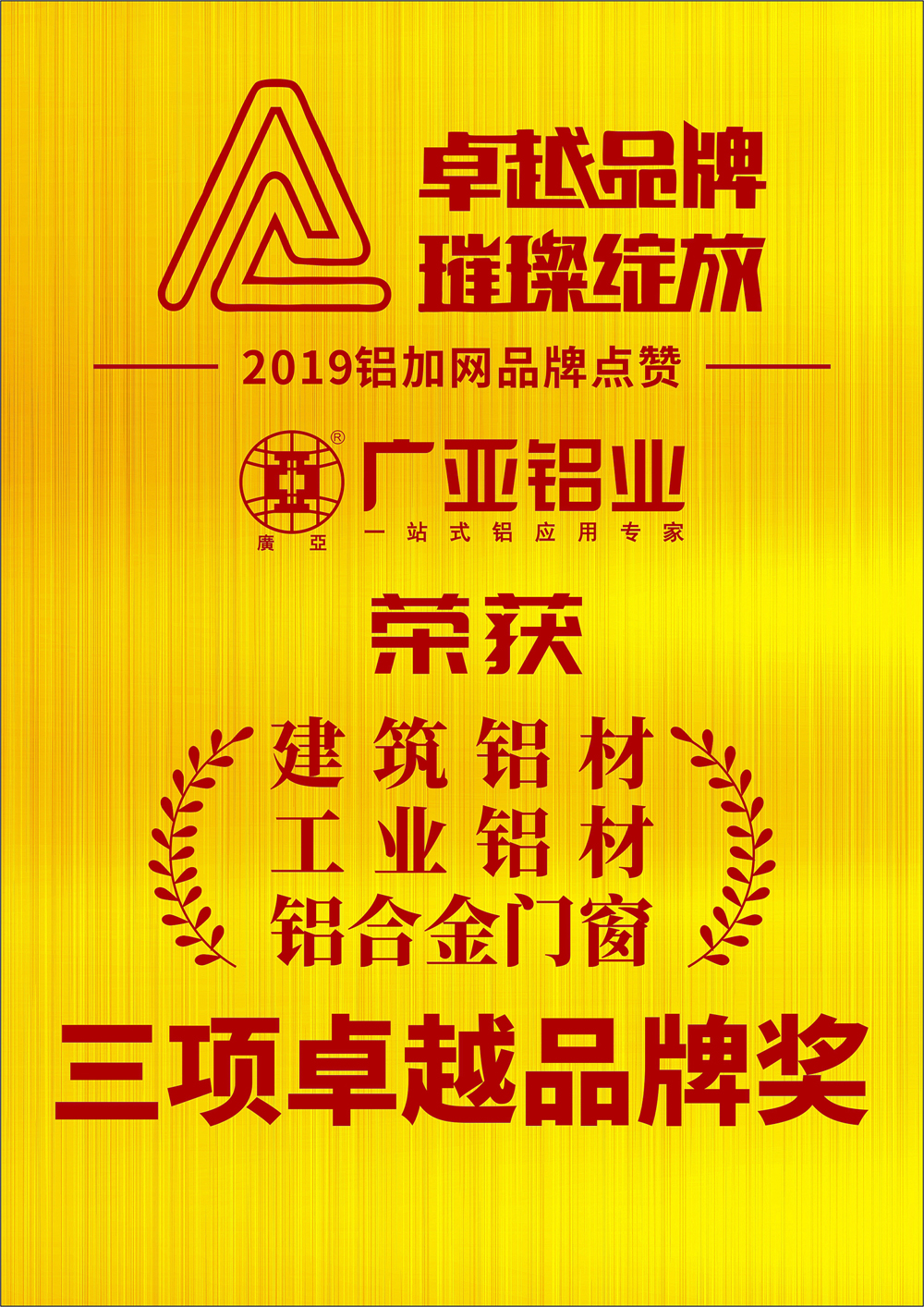 廣亞鋁業(yè)榮獲建筑鋁材、工業(yè)鋁材、鋁合金門窗三項卓越品牌大獎