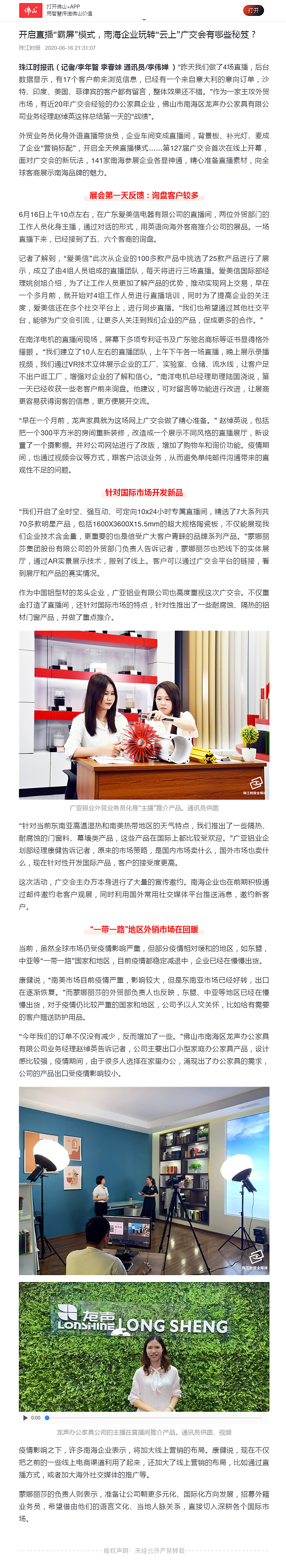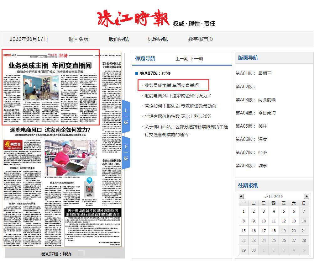 6月16日,佛山新聞網(wǎng)、珠江時(shí)報(bào)報(bào)道廣亞鋁業(yè)2020云上廣交會(huì)。