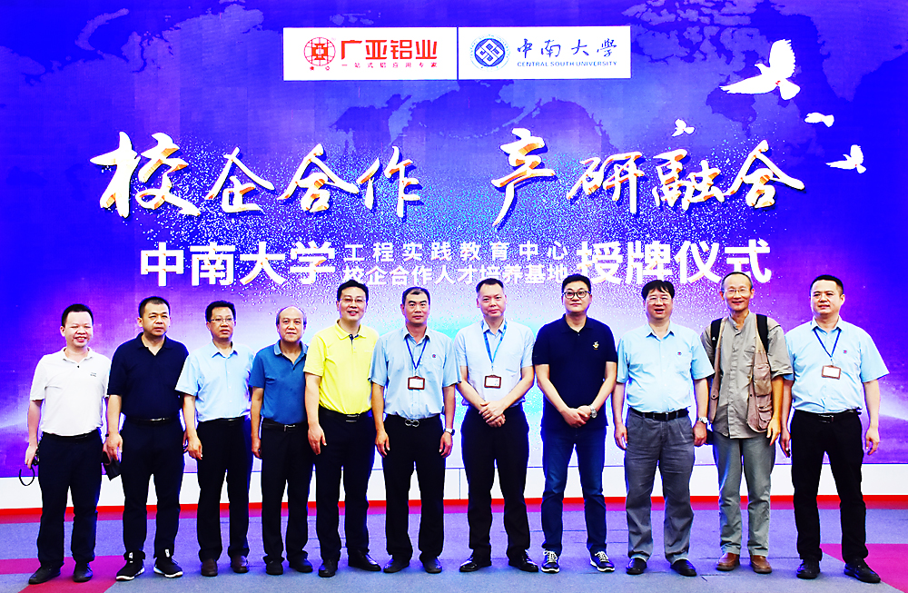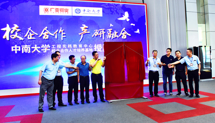 為加強校企產學研融合,7月15日,中南大學“校企合作人才培養(yǎng)基地”和“工程實踐教育中心”授牌儀式在廣亞鋁業(yè)南海基地舉行。這是自2017年廣亞與中南大學合作成立廣亞鋁加工研究院以來,雙方合作的再度深化。