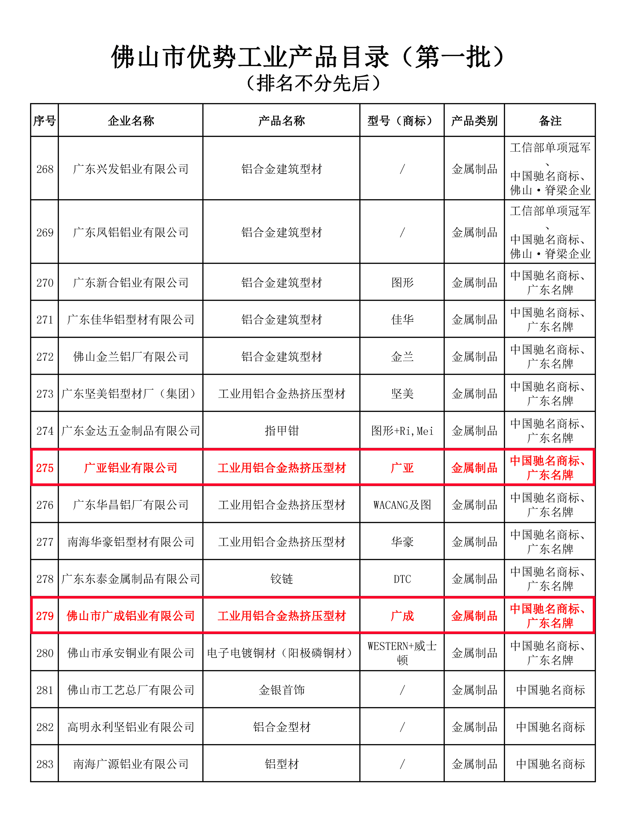 廣亞鋁業(yè)和廣成鋁業(yè)產(chǎn)品雙雙入選佛山市首批優(yōu)勢工業(yè)產(chǎn)品