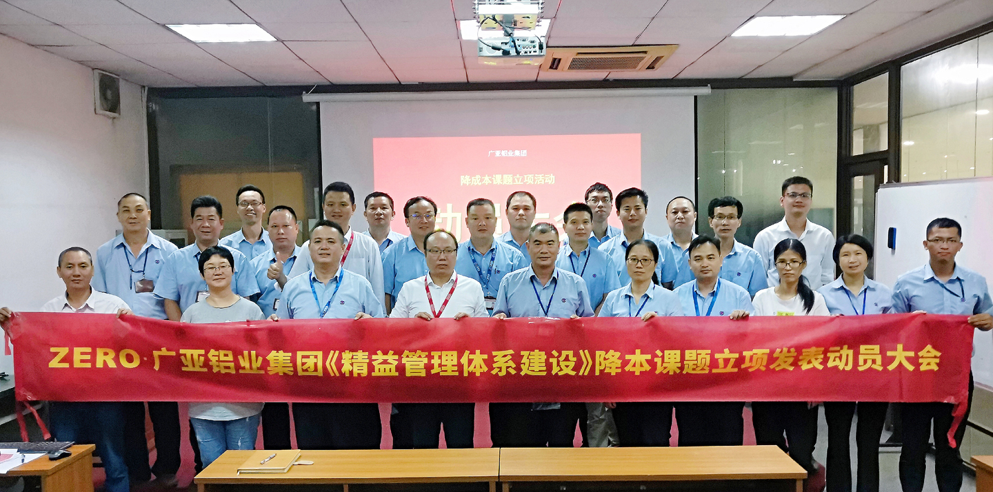 為推進精益管理體系建設,強化生產(chǎn)系統(tǒng)降本增效,8月15日,在零牌顧問專家的指導下,廣亞鋁業(yè)集團《精益管理體系建設》降本課題立項發(fā)表動員大會在廣亞鋁業(yè)南海基地舉行。零牌顧問機構廖為富、李藝鋒、黃日星、吳帆四位老師到場指導。集團鋁業(yè)事業(yè)部李英凱總經(jīng)理、廣亞生產(chǎn)基地溫永勝總經(jīng)理及生產(chǎn)、財務、采購等相關部門負責人參加了動員大會。