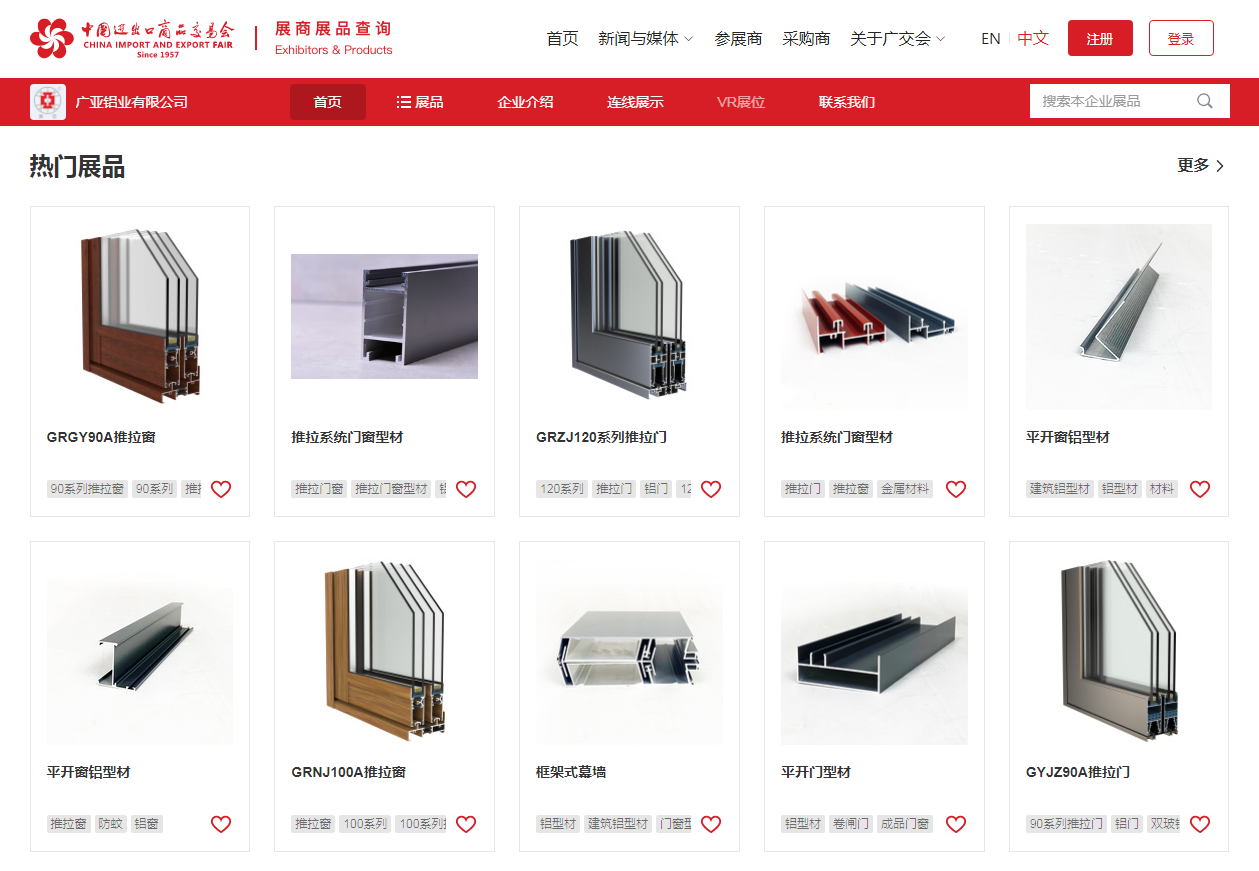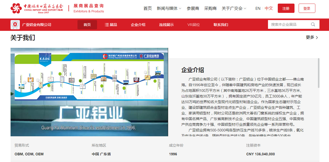 作為每年參展的“老廣交”,廣亞鋁業(yè)已積累一套成熟的運(yùn)作經(jīng)驗(yàn),依托廣交會(huì)線上平臺(tái),前瞻布局“云展廳”,以圖片、視頻、3D、VR等多維展示形式,通過(guò)線上
