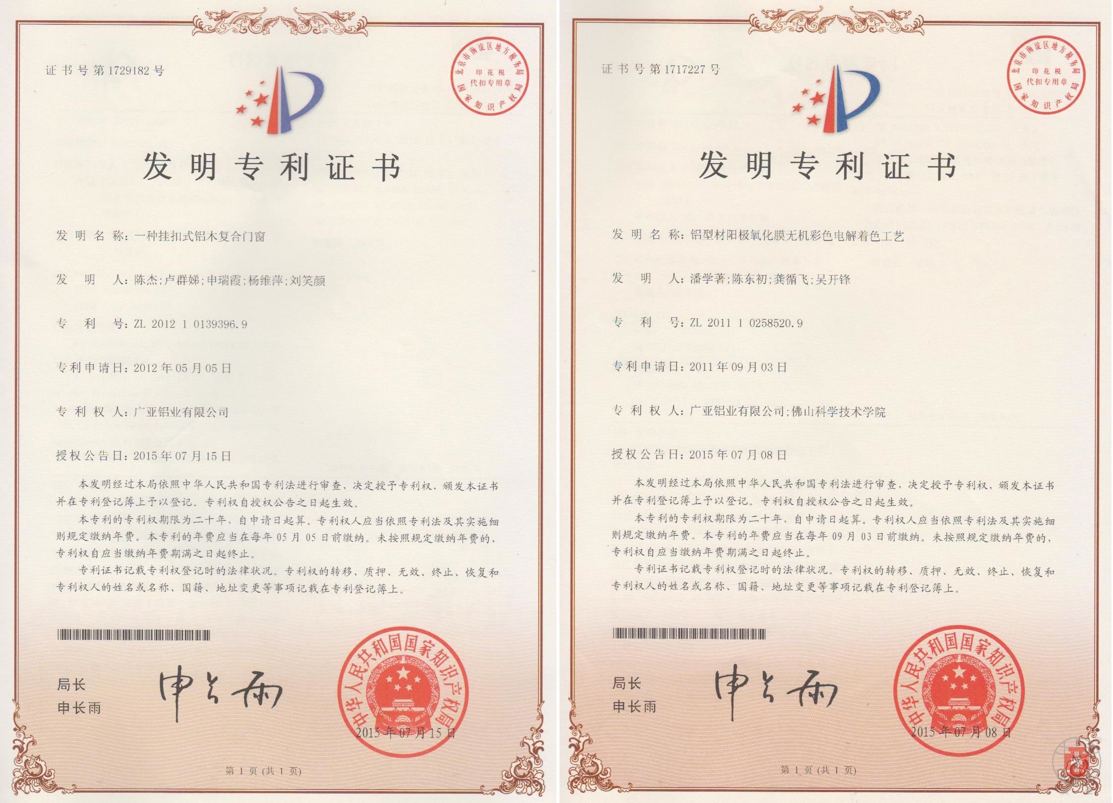 近期,在我司技術(shù)人員的不懈努力下,公司新增三項(xiàng)發(fā)明專利獲得國家知識產(chǎn)權(quán)局授權(quán),這三項(xiàng)發(fā)明專利分別是鋁型材陽極氧化膜 無機(jī)彩色電解著色工藝、一種掛扣式鋁木復(fù)合門窗、一種門窗型材及其安裝方法。截至目前,我司已取得國家專利授權(quán)228件,其中 發(fā)明專利4件,實(shí)用新型專利56件,外觀設(shè)計(jì)專利168件,具有很高的實(shí)用價值。