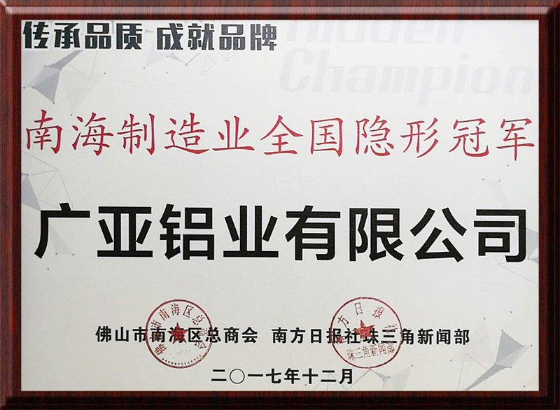 12月5日,由南??偵虝?huì)攜手南方日?qǐng)?bào)社,歷時(shí)6個(gè)月開(kāi)展的“尋找南海制造業(yè)全國(guó)隱形冠軍”活動(dòng)收獲首批成果。70家企業(yè)榮登“隱形冠軍企業(yè)”龍虎榜。廣亞鋁業(yè)集團(tuán)憑借21年厚積薄發(fā),名列其中。