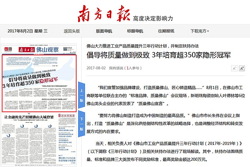 素以低調(diào)務(wù)實(shí)著稱的南海企業(yè),將工匠精神的執(zhí)著注入實(shí)體經(jīng)濟(jì)的肌體中,催生出了大批“隱形冠軍”。這些企業(yè),有如璀璨的珍珠在南海這塊制造高地上星羅棋布,是南海由制造高地向品牌強(qiáng)地吹響集結(jié)號(hào)的關(guān)鍵力量。